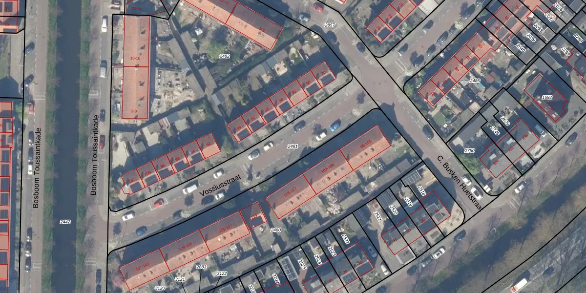 Gebruik de zoekbalk of klik op een perceel om informatie over het perceel te bekijken.