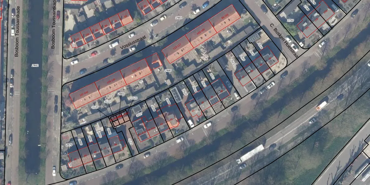 Gebruik de zoekbalk of klik op een perceel om informatie over het perceel te bekijken.