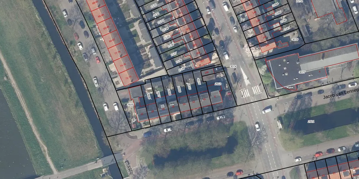Gebruik de zoekbalk of klik op een perceel om informatie over het perceel te bekijken.
