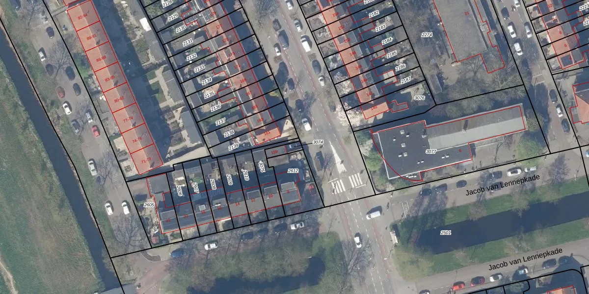 Gebruik de zoekbalk of klik op een perceel om informatie over het perceel te bekijken.