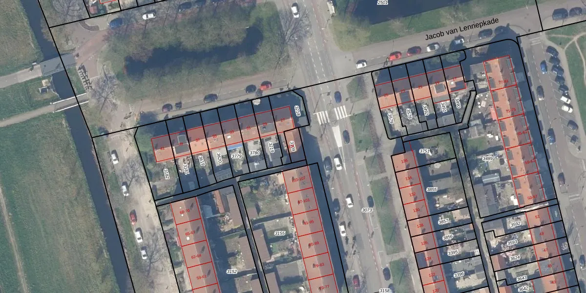 Gebruik de zoekbalk of klik op een perceel om informatie over het perceel te bekijken.