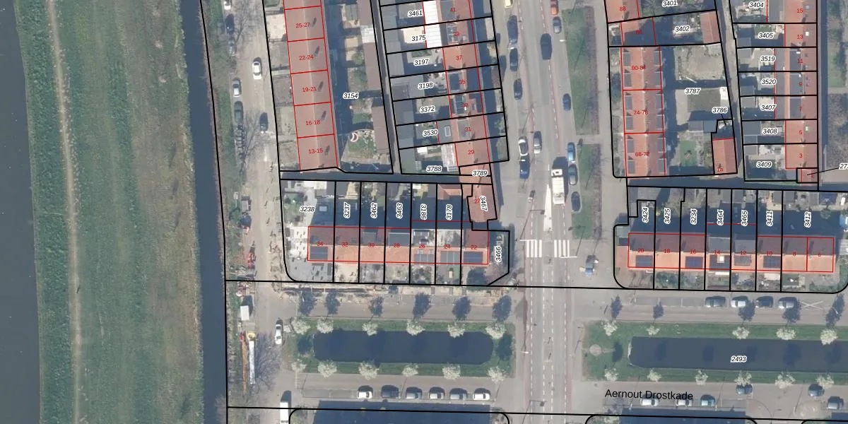 Gebruik de zoekbalk of klik op een perceel om informatie over het perceel te bekijken.