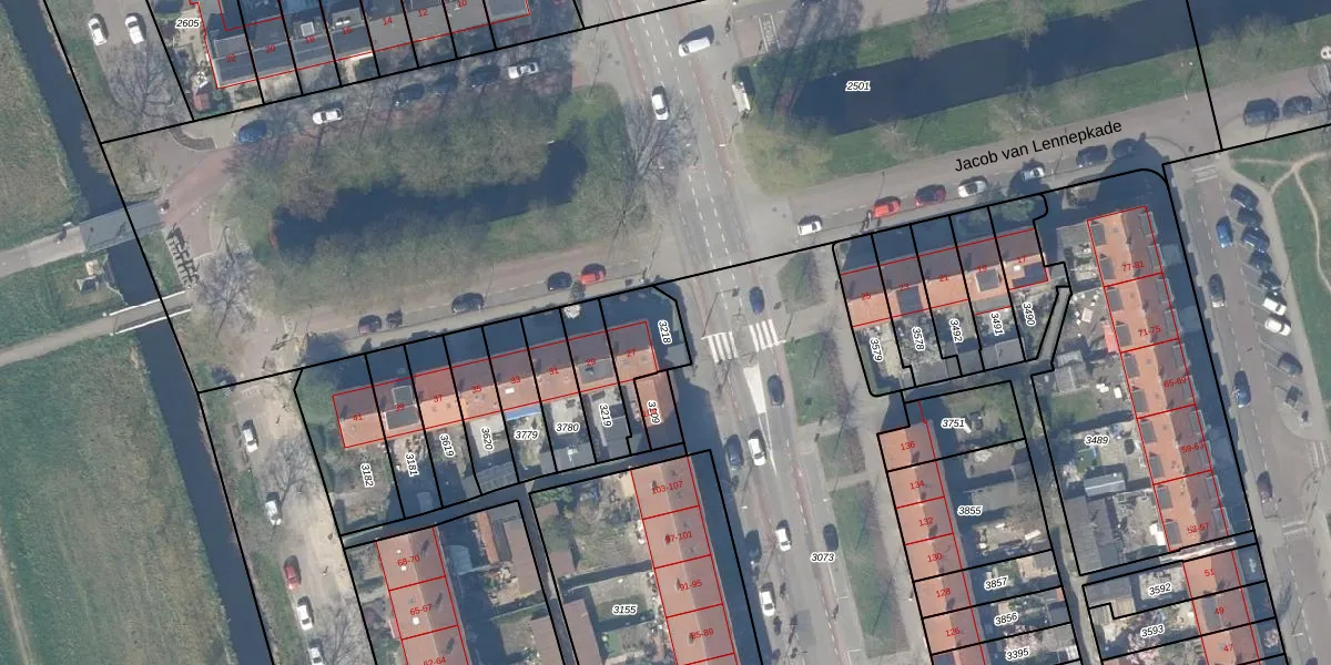 Gebruik de zoekbalk of klik op een perceel om informatie over het perceel te bekijken.