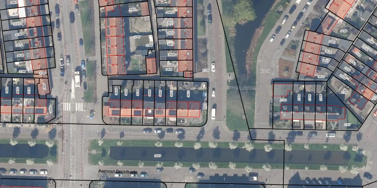 Gebruik de zoekbalk of klik op een perceel om informatie over het perceel te bekijken.