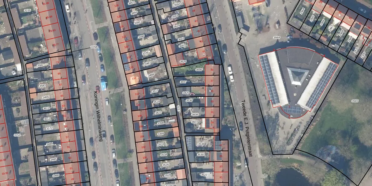 Gebruik de zoekbalk of klik op een perceel om informatie over het perceel te bekijken.