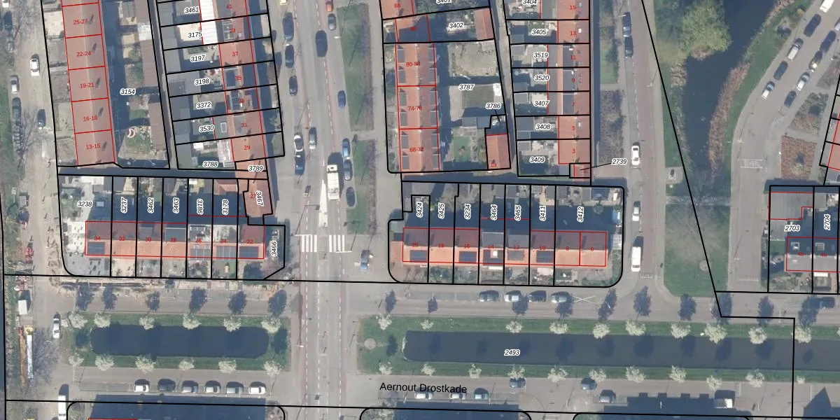 Gebruik de zoekbalk of klik op een perceel om informatie over het perceel te bekijken.