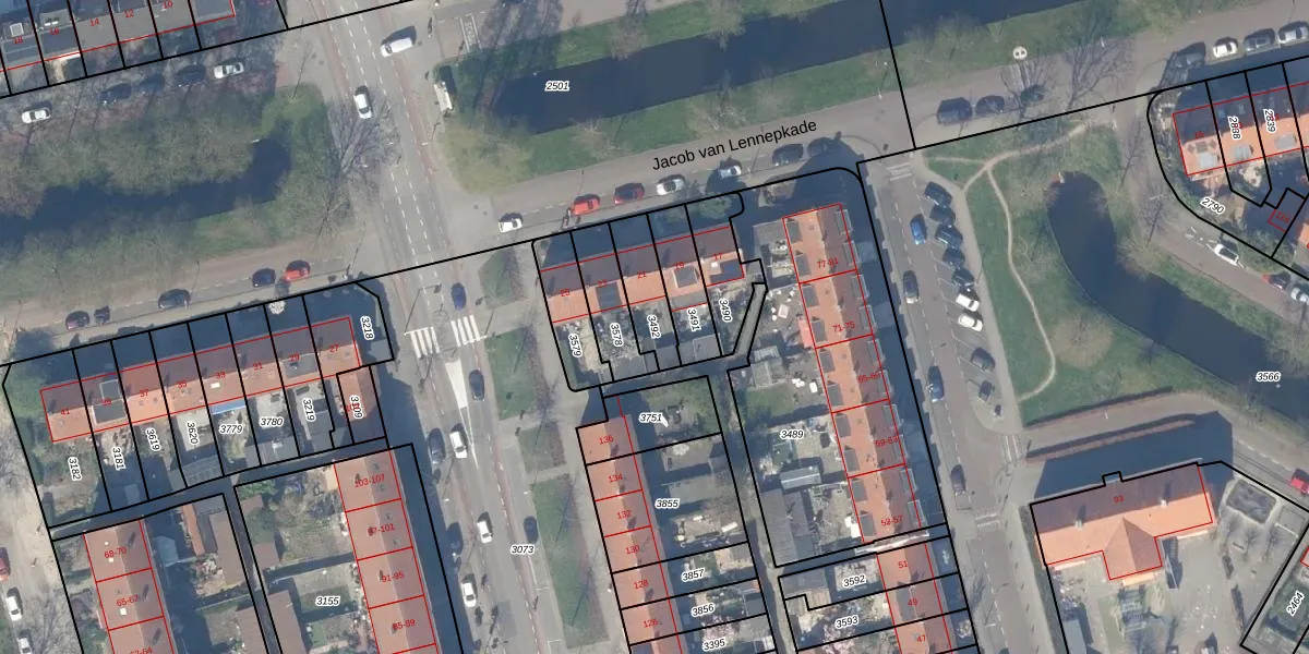 Gebruik de zoekbalk of klik op een perceel om informatie over het perceel te bekijken.