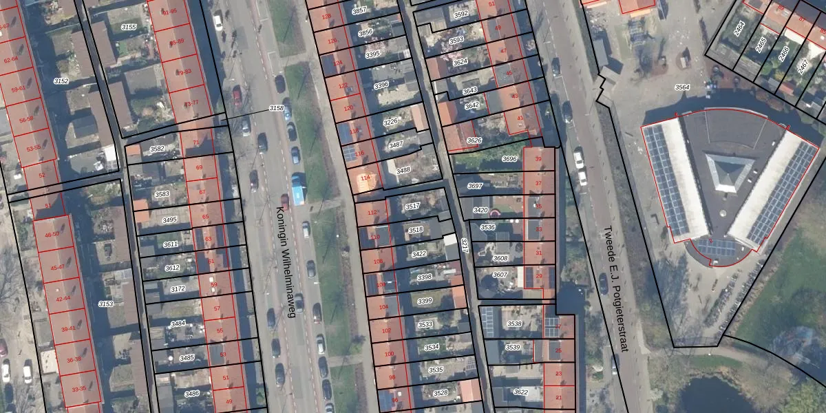 Gebruik de zoekbalk of klik op een perceel om informatie over het perceel te bekijken.