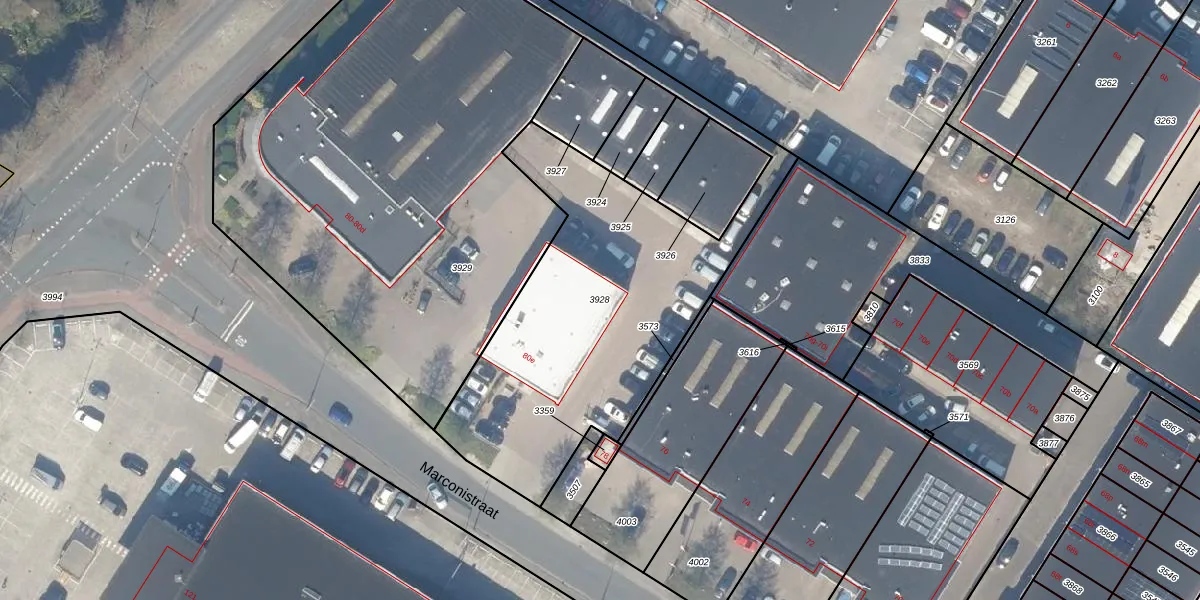 Gebruik de zoekbalk of klik op een perceel om informatie over het perceel te bekijken.