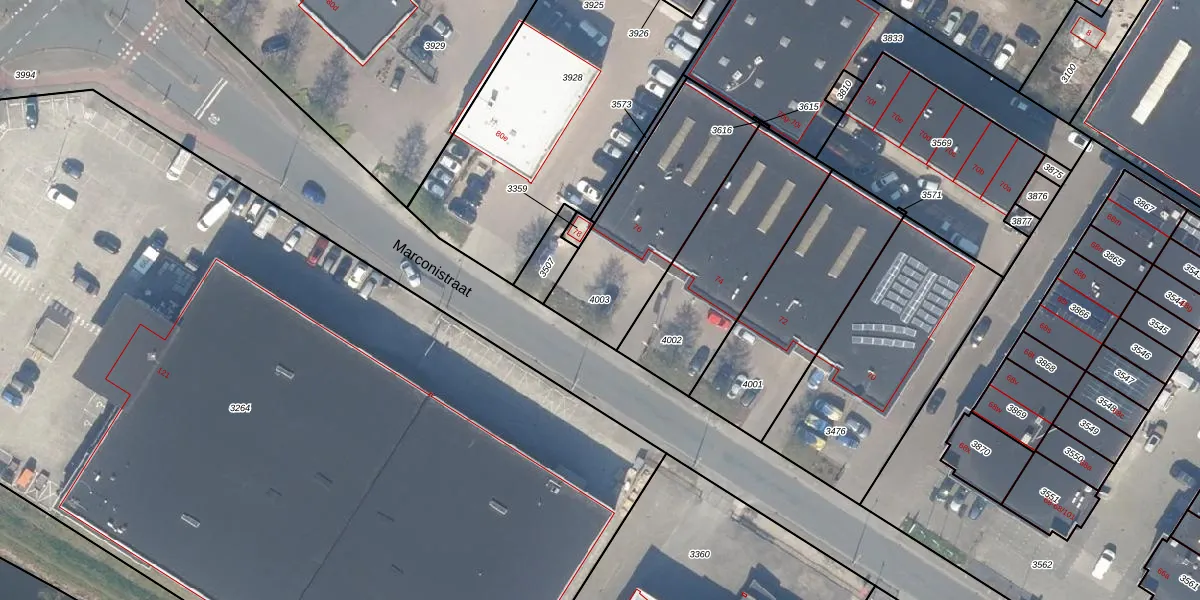 Gebruik de zoekbalk of klik op een perceel om informatie over het perceel te bekijken.