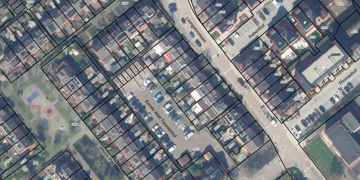 Gebruik de zoekbalk of klik op een perceel om informatie over het perceel te bekijken.