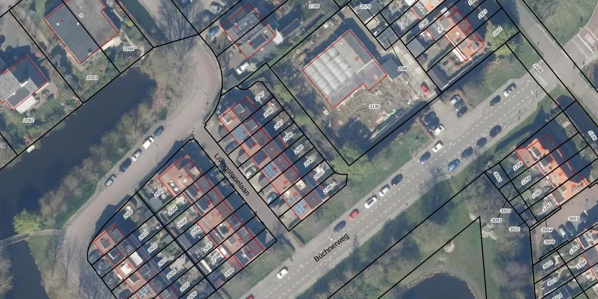 Gebruik de zoekbalk of klik op een perceel om informatie over het perceel te bekijken.
