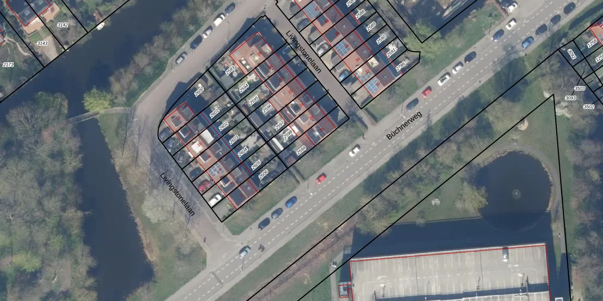 Gebruik de zoekbalk of klik op een perceel om informatie over het perceel te bekijken.
