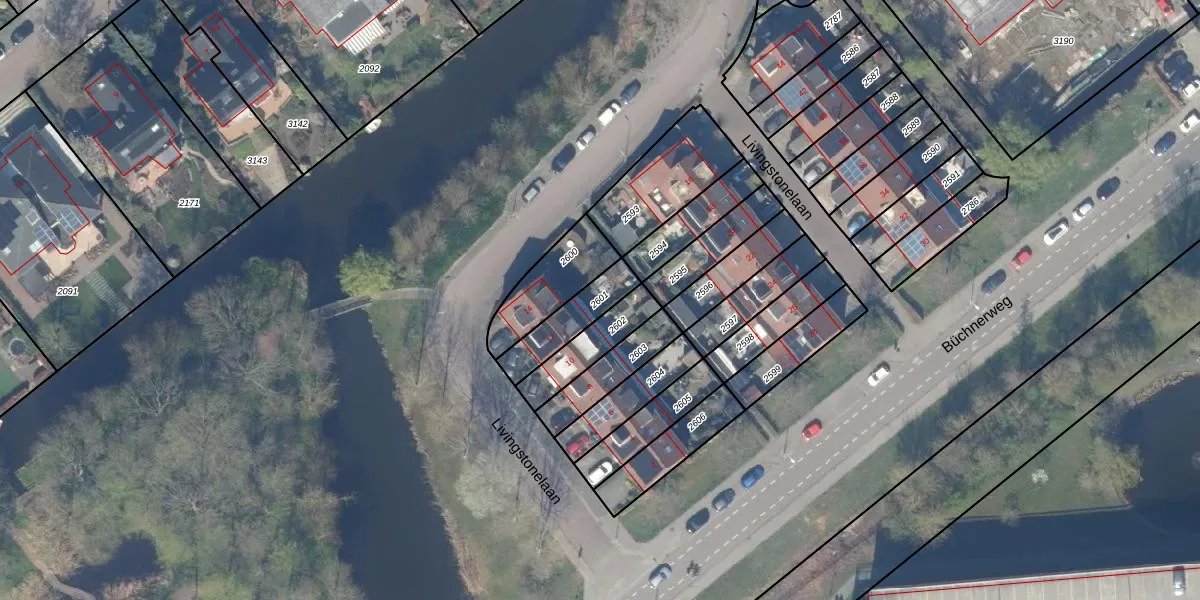 Gebruik de zoekbalk of klik op een perceel om informatie over het perceel te bekijken.