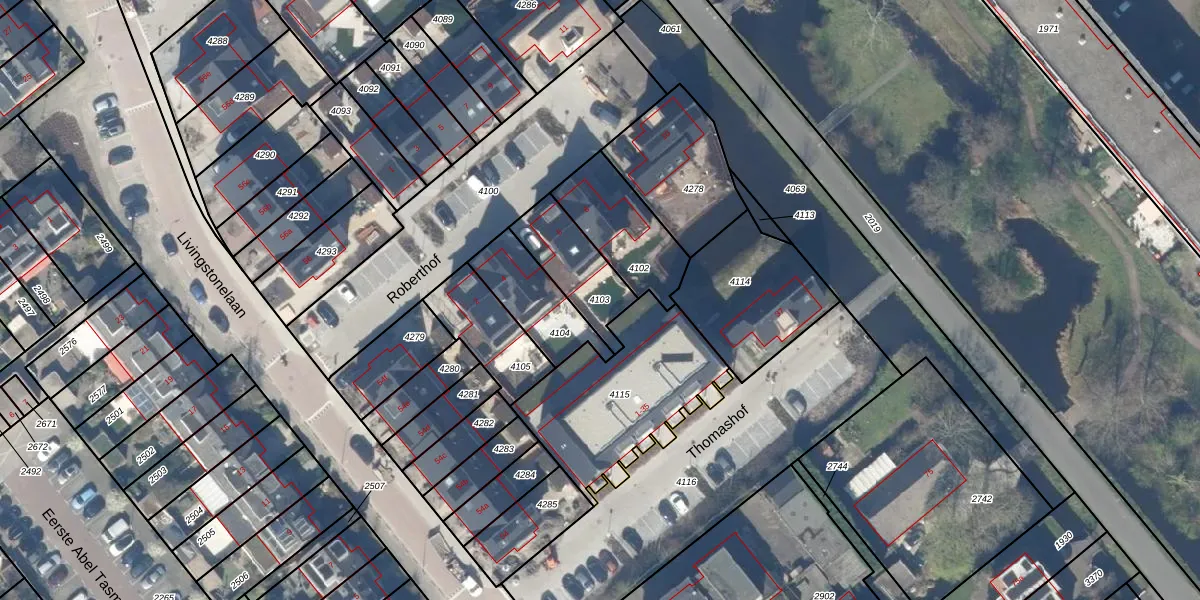 Gebruik de zoekbalk of klik op een perceel om informatie over het perceel te bekijken.