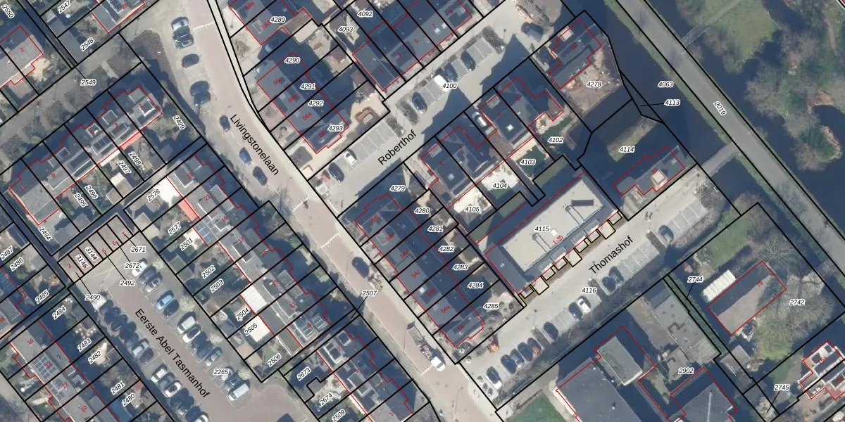 Gebruik de zoekbalk of klik op een perceel om informatie over het perceel te bekijken.