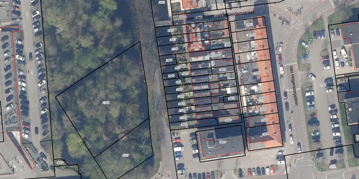 Gebruik de zoekbalk of klik op een perceel om informatie over het perceel te bekijken.