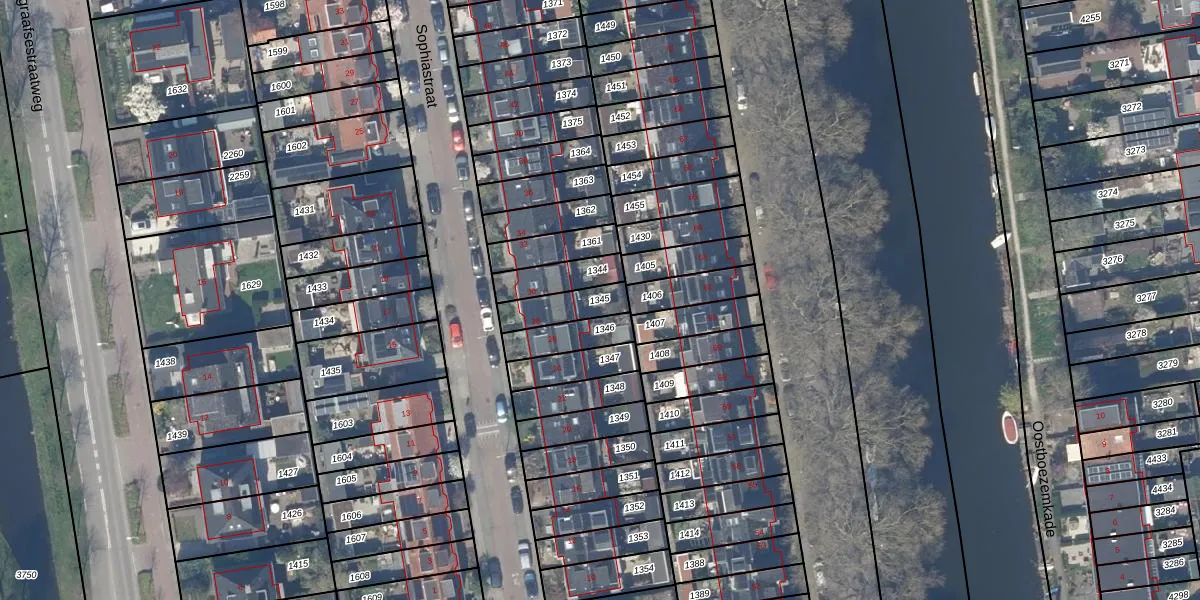 Gebruik de zoekbalk of klik op een perceel om informatie over het perceel te bekijken.