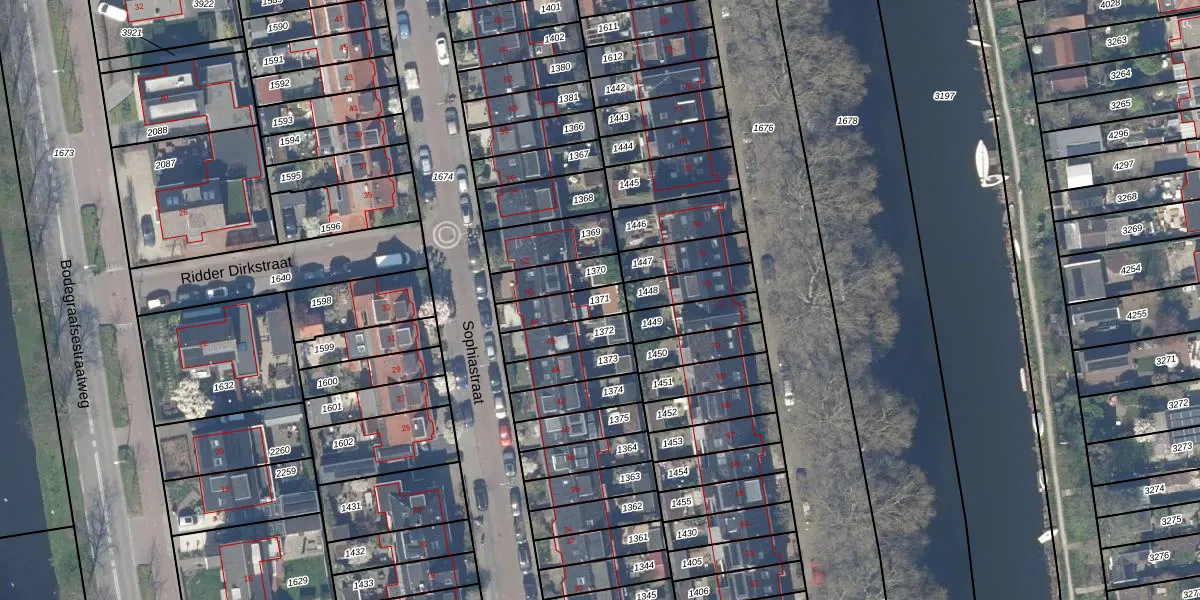 Gebruik de zoekbalk of klik op een perceel om informatie over het perceel te bekijken.