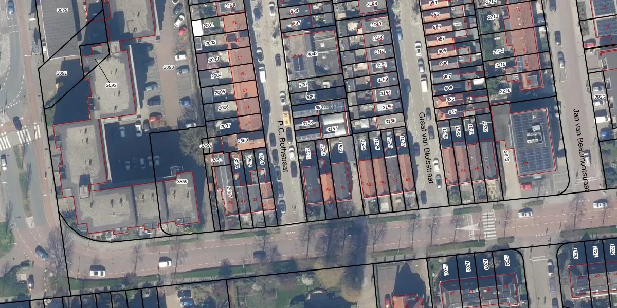 Gebruik de zoekbalk of klik op een perceel om informatie over het perceel te bekijken.