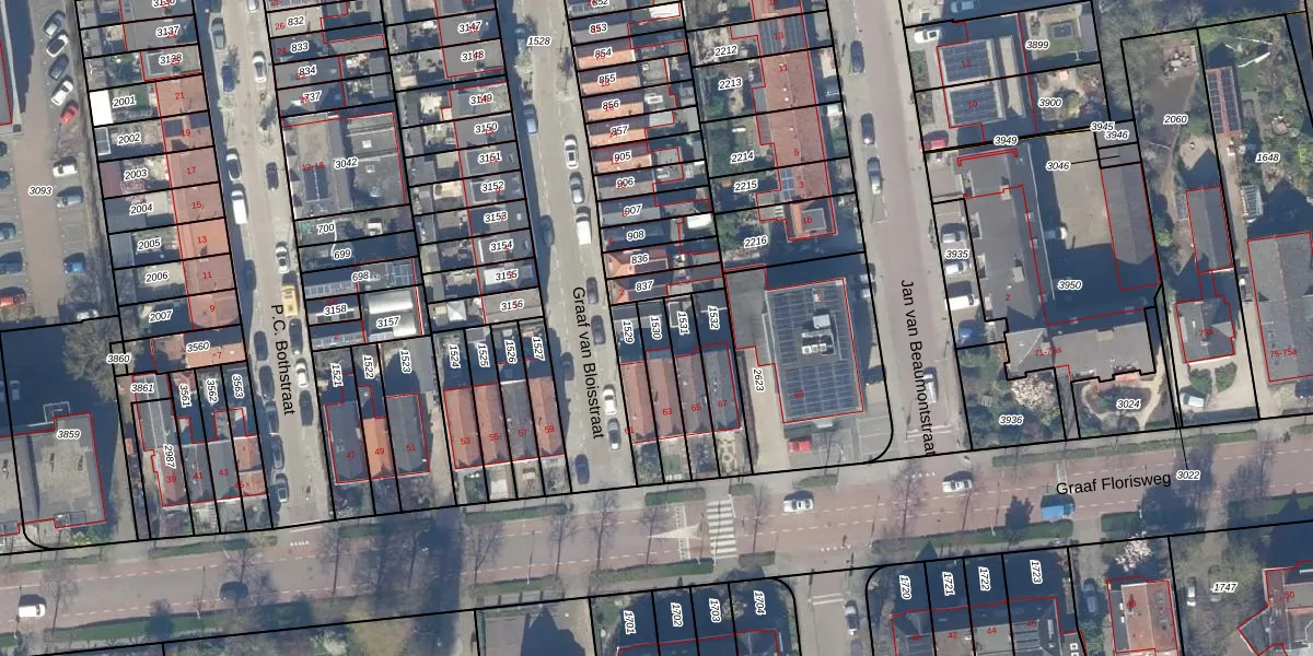 Gebruik de zoekbalk of klik op een perceel om informatie over het perceel te bekijken.