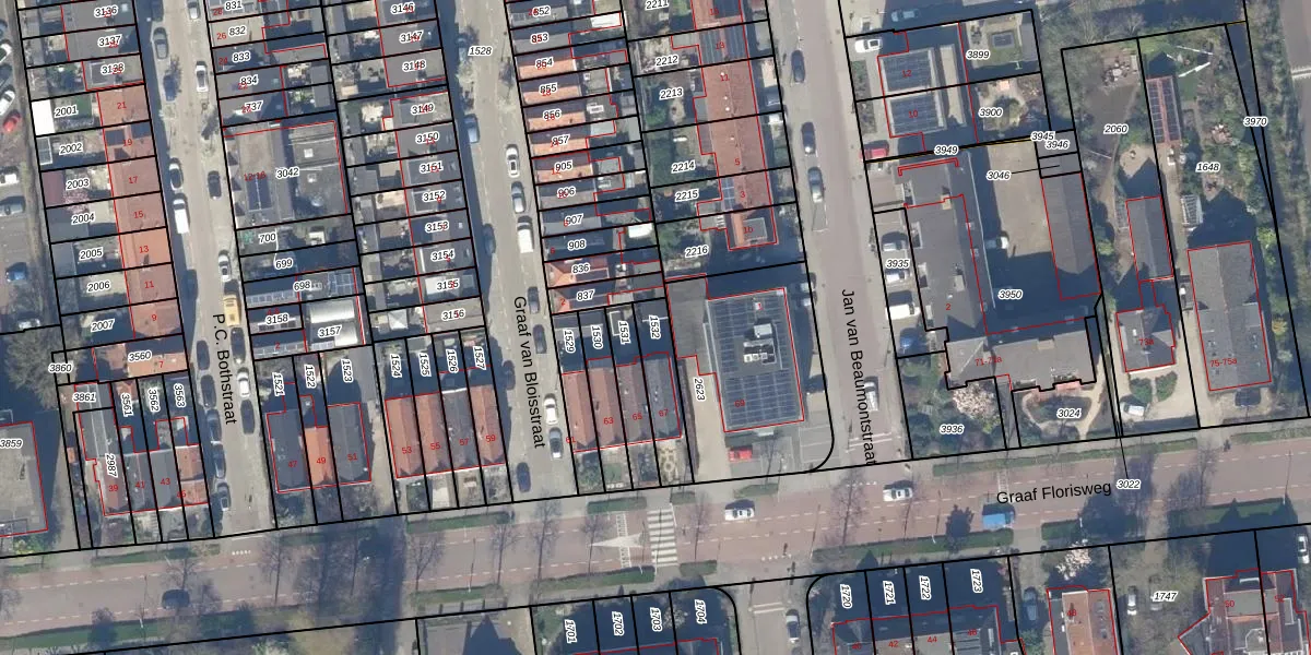 Gebruik de zoekbalk of klik op een perceel om informatie over het perceel te bekijken.