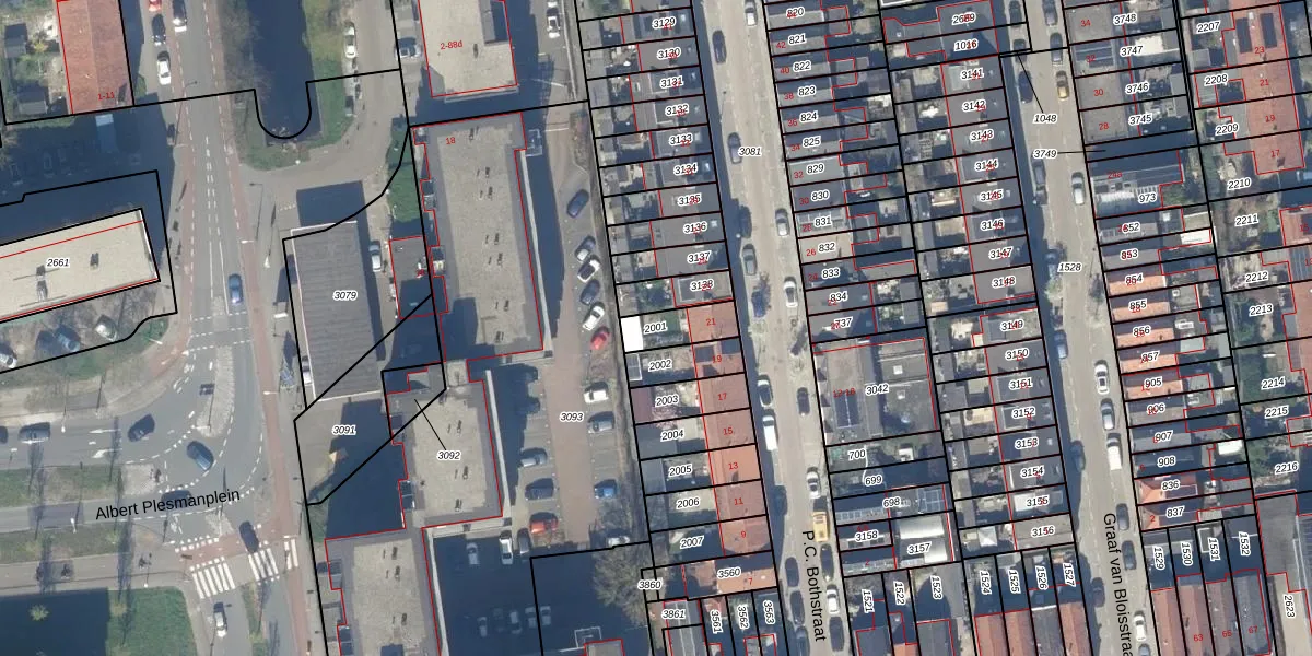 Gebruik de zoekbalk of klik op een perceel om informatie over het perceel te bekijken.