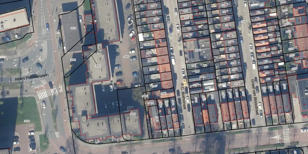 Gebruik de zoekbalk of klik op een perceel om informatie over het perceel te bekijken.