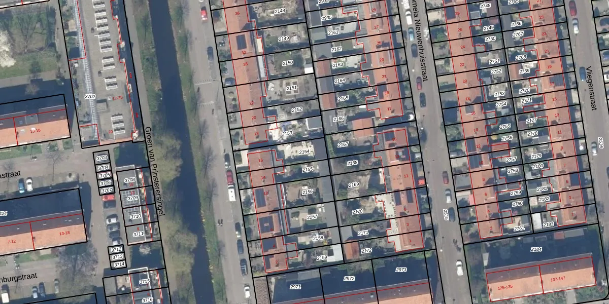 Gebruik de zoekbalk of klik op een perceel om informatie over het perceel te bekijken.