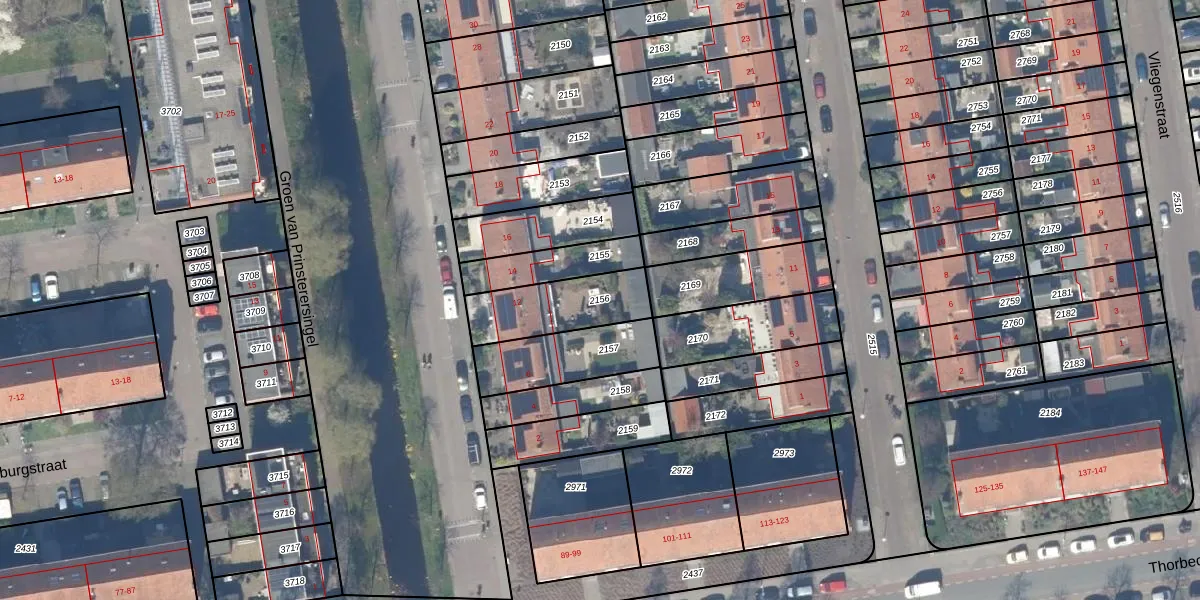 Gebruik de zoekbalk of klik op een perceel om informatie over het perceel te bekijken.