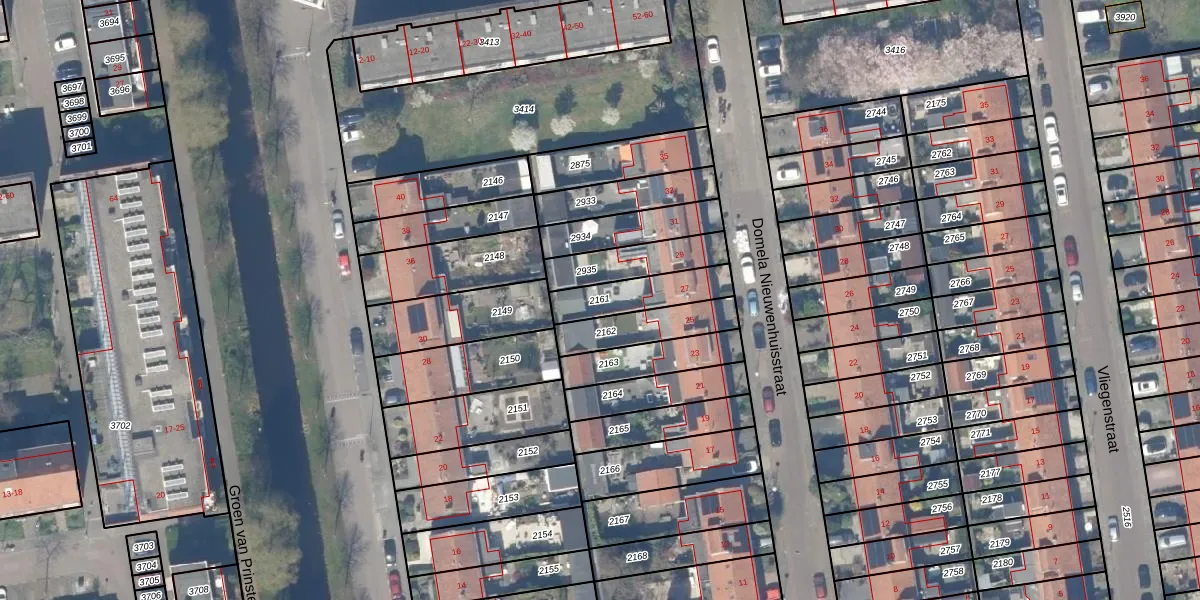 Gebruik de zoekbalk of klik op een perceel om informatie over het perceel te bekijken.