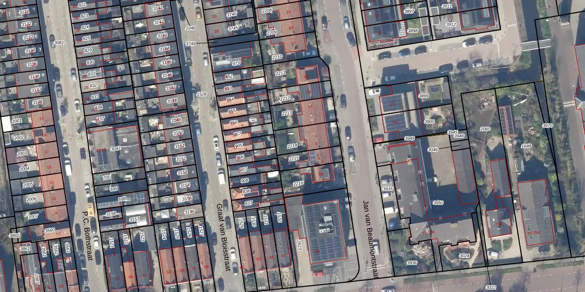 Gebruik de zoekbalk of klik op een perceel om informatie over het perceel te bekijken.