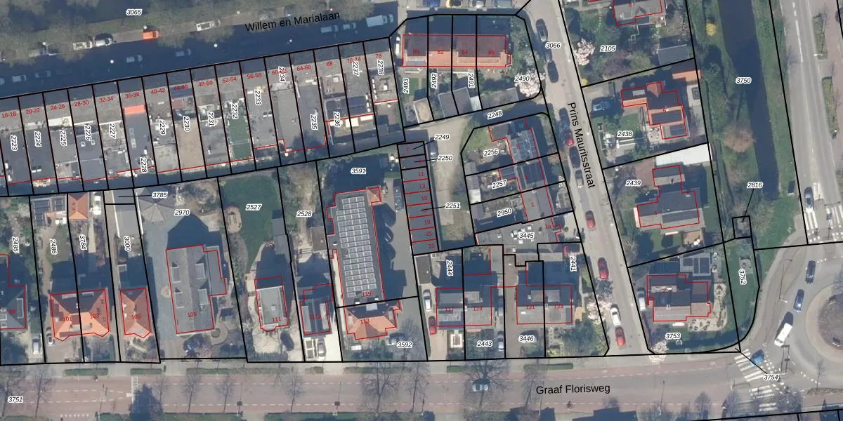 Gebruik de zoekbalk of klik op een perceel om informatie over het perceel te bekijken.