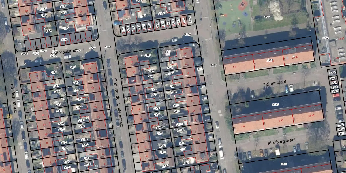 Gebruik de zoekbalk of klik op een perceel om informatie over het perceel te bekijken.