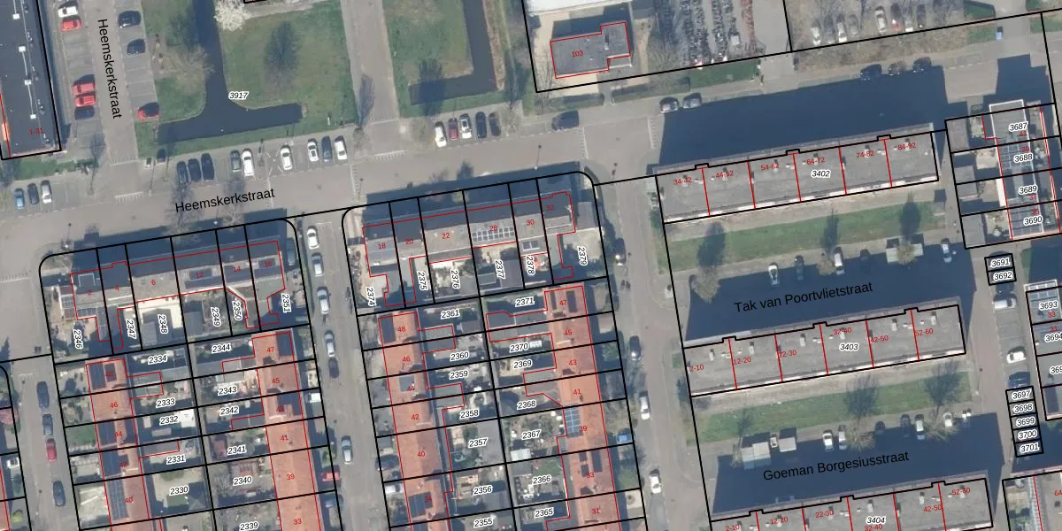 Gebruik de zoekbalk of klik op een perceel om informatie over het perceel te bekijken.