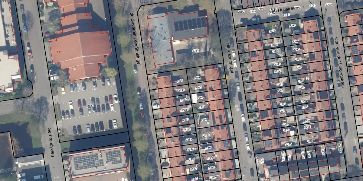 Gebruik de zoekbalk of klik op een perceel om informatie over het perceel te bekijken.
