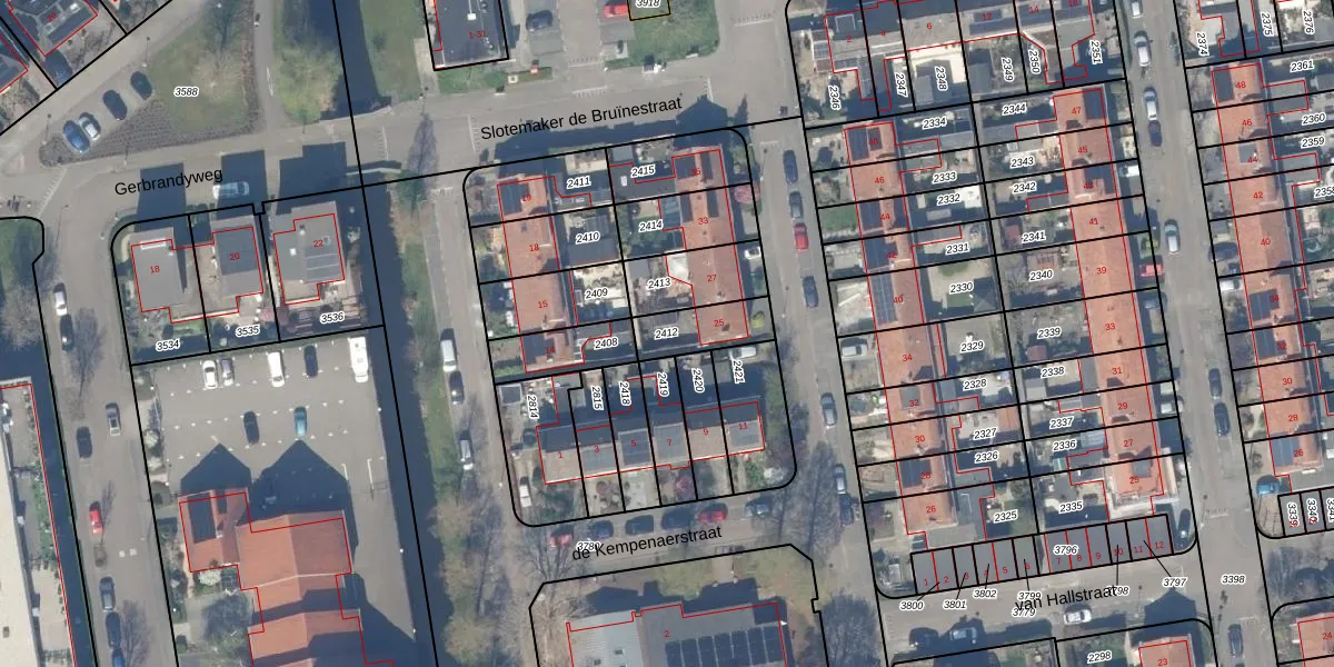 Gebruik de zoekbalk of klik op een perceel om informatie over het perceel te bekijken.