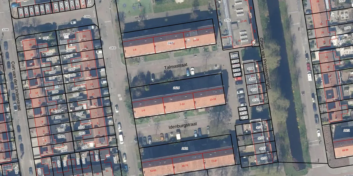 Gebruik de zoekbalk of klik op een perceel om informatie over het perceel te bekijken.