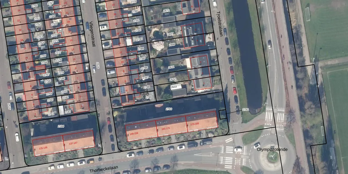 Gebruik de zoekbalk of klik op een perceel om informatie over het perceel te bekijken.