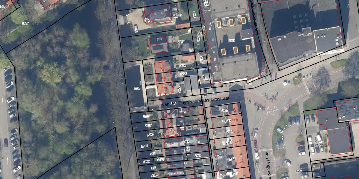 Gebruik de zoekbalk of klik op een perceel om informatie over het perceel te bekijken.