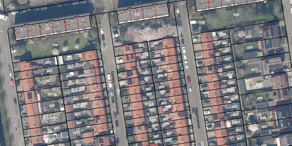 Gebruik de zoekbalk of klik op een perceel om informatie over het perceel te bekijken.