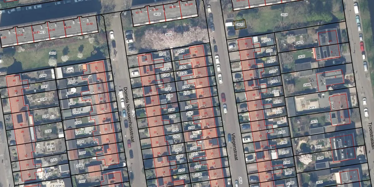 Gebruik de zoekbalk of klik op een perceel om informatie over het perceel te bekijken.