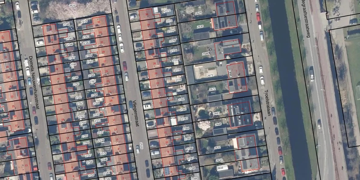 Gebruik de zoekbalk of klik op een perceel om informatie over het perceel te bekijken.