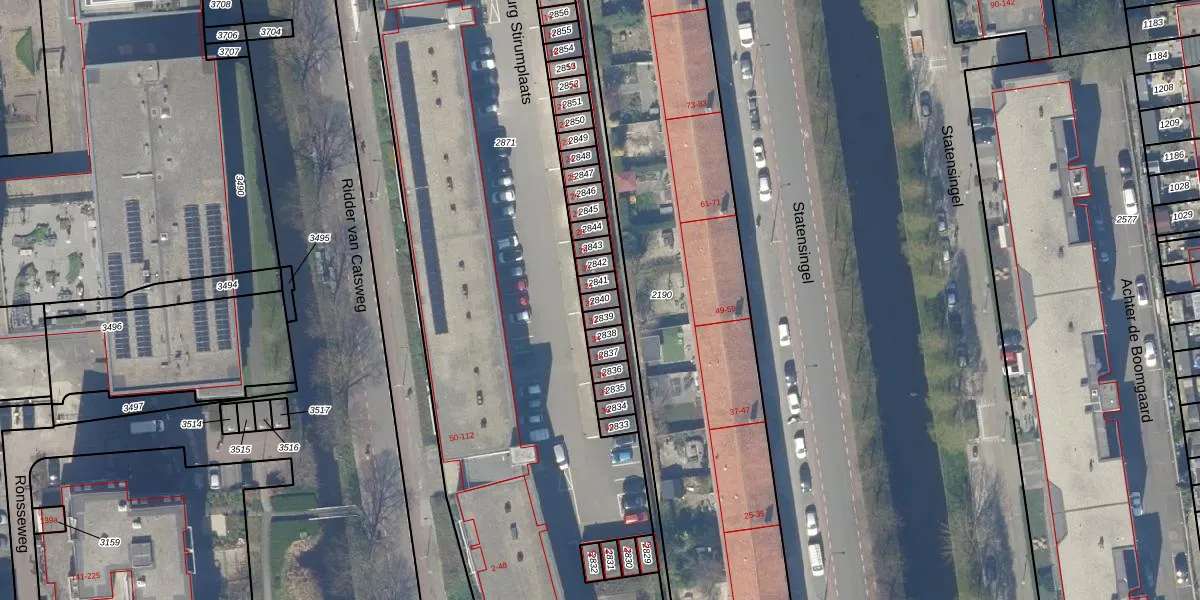 Gebruik de zoekbalk of klik op een perceel om informatie over het perceel te bekijken.