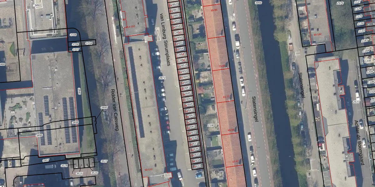 Gebruik de zoekbalk of klik op een perceel om informatie over het perceel te bekijken.