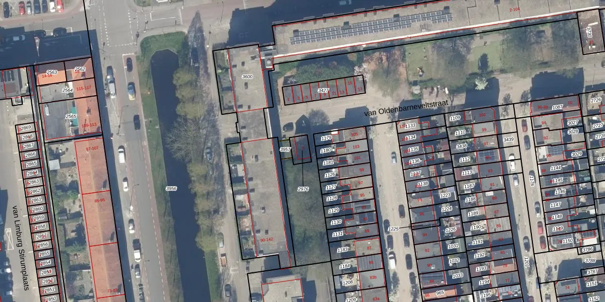 Gebruik de zoekbalk of klik op een perceel om informatie over het perceel te bekijken.