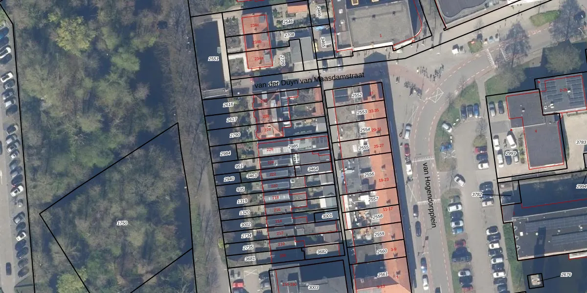 Gebruik de zoekbalk of klik op een perceel om informatie over het perceel te bekijken.