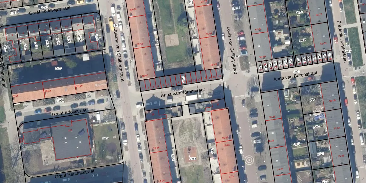 Gebruik de zoekbalk of klik op een perceel om informatie over het perceel te bekijken.