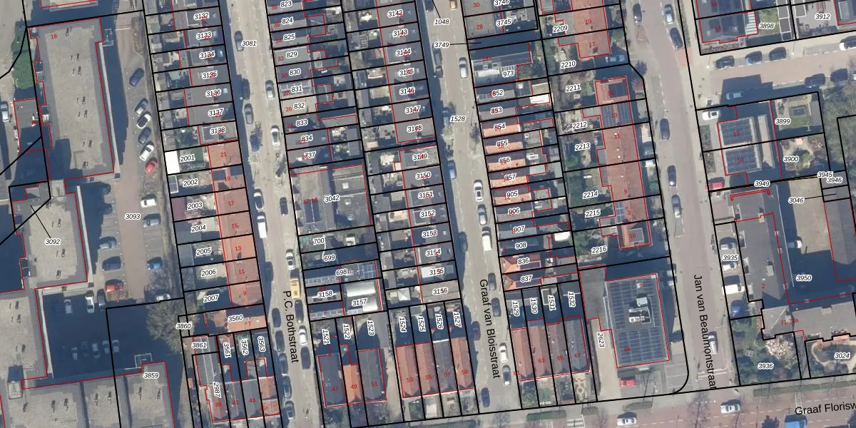 Gebruik de zoekbalk of klik op een perceel om informatie over het perceel te bekijken.