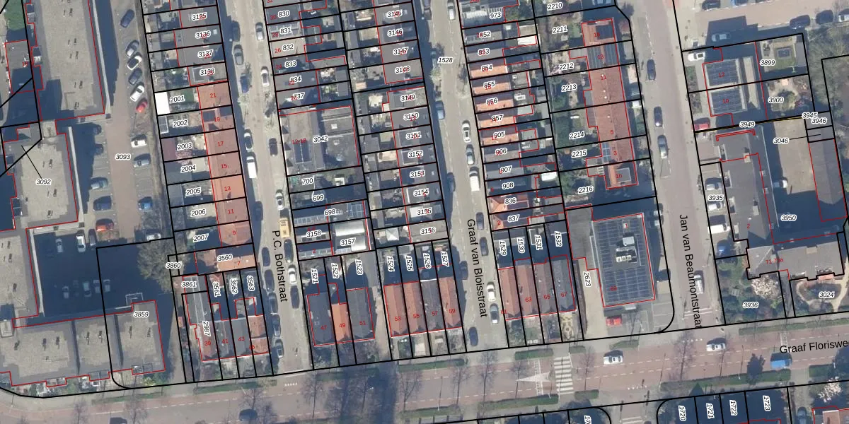 Gebruik de zoekbalk of klik op een perceel om informatie over het perceel te bekijken.